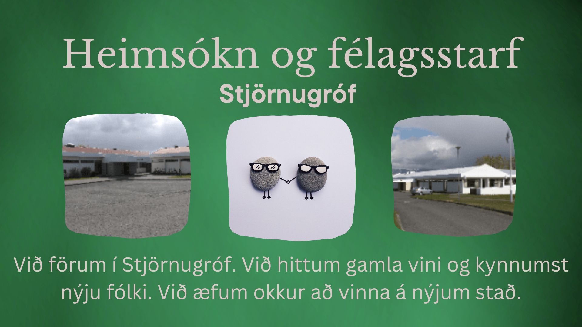 Lýsing: Við förum í Stjörnugróf. Við hittum gamla vini og kynnumst nýju fólki. Við æfum okkur að vinna á nýjum stað.