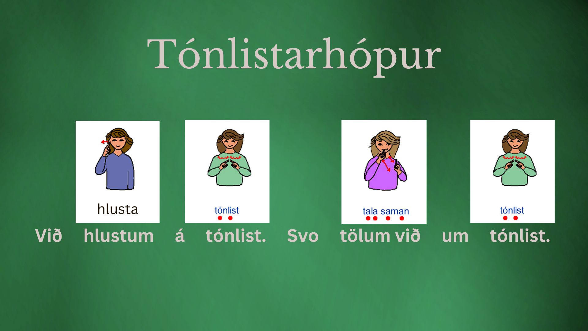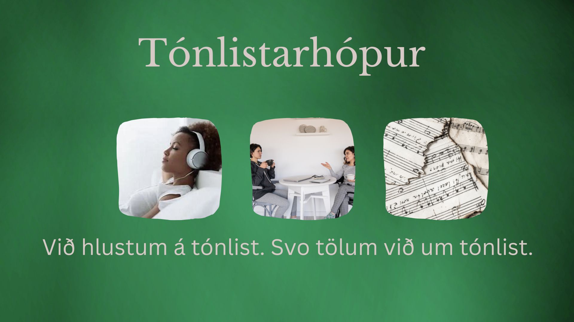 Lýsing: Við veljum tónlist. Við hlustum á tónlist. Svo tölum við saman.